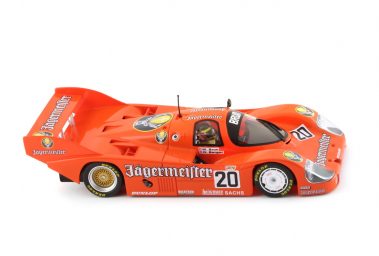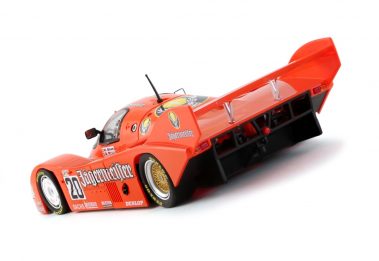 The Porsche 956 and later 962 models could be assembled with two different rear wing configurations: “low downforce”, used mostly in Le Mans where the 6.5 km Hunaudières straight required a very low drag at the expense of downforce, and “high downforce”, for twistier circuits. Regardless of the configuration, Porsche 956 and 962 cars were the cars to beat in any Group C competition in the early 80’s. This car, driven by Gerard Berger and Walter Brun, raced the 1000 km of Hockenheim, which was part of the 1985 FIA World Endurance Championship.