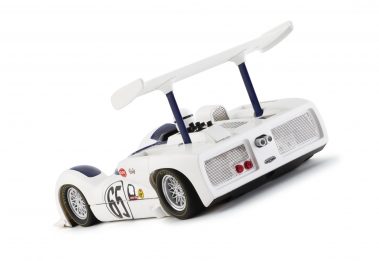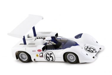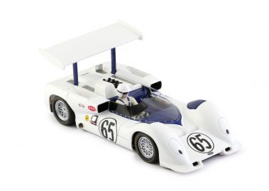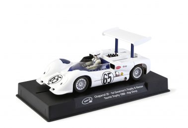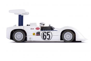 In 1966 Chaparral introduced model 2E for the Can-Am series. With its high mounted wing, clever aerodynamics and rear mounted radiators, it was the car that changed racing, forever. Its best result was at Laguna Seca, where the 2E of Phil Hill won the race and Jim Hall finished second. The wing was mounted to the rear suspension uprights to put the downforce directly into the tires without compressing the suspensions. The wing position could be adjusted, with a foot pedal mechanism, from maximum downforce angle for cornering to minimum drag angle for straightaway. Of all the Chaparrals, this car was Jim Hall’s favourite. This car featured an aluminuium semi-monocoque chassis, and a small block Chevrolet 327 cubic-inch V8 engine. In 1966, at Riverside, in the Can-Am Los Angeles Times Grand Prix, Jim Hall came close to the victory, being slowed by low fuel pressure during the final laps, however he was able to end in second place.