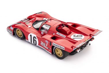 An unusual bad luck struck at Le Mans, where an accident eliminated four of the five 512S in one stroke. For the ending part of the season Ferrari decided to create a lighter and aerodynamically advanced version: thus the 512M (Modified). The new ‘M’ model proved immediately faster than the ‘S’ version, but took its first steps only three weeks before the last Championship race at Österreichring (now Red Bull Ring), where Jacky Ickx led the race until he had to retire due to an alternator failure.