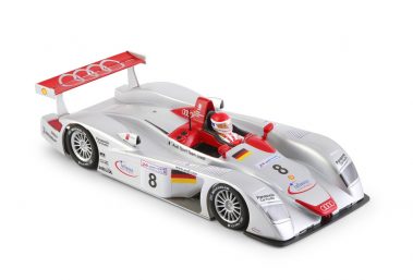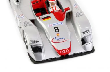 In year 2000 Audi launched the R8 LMP model, a car destined to be dominant on all endurance race tracks for several years. For its Le Mans debut, Joest Racing entered the works cars from Ingolstadt in the LMP P 900 class. Competitors consisted mainly of works teams from Cadillac, Panoz Motorsports and Pescarolo Sport, as well as some other private LMP entries. Jackie Ickx started the race waving the French flag, and as it was to be expected, the performance of the Audi R8 LMP could not be matched. However, at the end of the first hour and for eight laps the race was surprisingly lead by Panoz’s front engined LMP-1 Roadster S. Eventually, the chequered flag was taken by car No.8 driven by Frank Biela, Tom Kristensen, Emanuele Pirro, followed by car No.9 (Aiello, McNish, Ortelli) and car No.7 (Alboreto, Abt, Capello) in second and respectively third place.