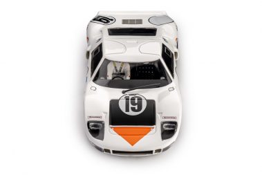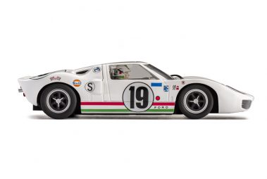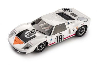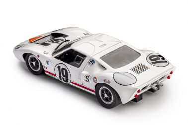 The Ford GT40 is one of the most famous cars in Le Mans history, having won the 24-Hour race four times in a row. In 1966 it was with the Mk II version, in 1967 with the Mk IV, in 1968 and 1969 with the first one, Mk I. It was built to compete against Ferrari, who had won Le Mans six times in a row from 1960 to 1965. The development of ‘Mk I’ was carried mainly by Ford Advanced Vehicle in England, joined in 1965 by Carroll Shelby. It was a car built for racing, but also for road circulation; the name ‘GT40’ comes from the height from ground, which is 40 inches. The chassis was a steel semi – monocoque, the body was made of fiberglass. The engine came from the one used on the AC Cobra, with cast-iron block and head: naturally aspired V8, 4.7 litres displacement, 2 valves per cylinder operated by a central camshaft with push-rod; it was coupled with a ZF 5 speeds gearbox. Brakes were provided with vented discs on all the four wheels. This GT40, raced the 12 Hours of Sebring in 1967, driven by N. Vaccarella and U.Maglioli.