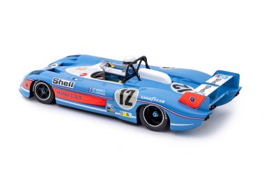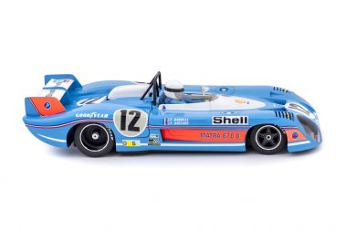 A Le Mans, nel 1974, le ‘MS 670 B’ iscritte erano tre. Henri Pescarolo e Gérard Larrousse, con la vettura n.7, dominarono la corsa vincendo per il secondo anno consecutivo. The Matra-Simca MS 670 was a Prototype race car that won the Le Mans 24 Hours 3 times in a row (from 1972 to 1974) as well as the World Manufacturers Championship twice (1973 and 1974). The car was designed by Bernard Boyer and Jean-Louis Caussin. The long tail version, designed specifically for Le Mans, was still called ‘670 B’, ‘B’ being the distinctive letter of all Matras fitted with the Porsche 5-speeds gearbox. The chassis was an aluminium monocoque, with fibreglass body. The engine, whose sound was extremely loud, was a 60° 3-litres V12, with aluminium block and heads, 79.7 mm bore and 50.0 mm stroke. The motor version used in ‘74 at Le Mans was ‘MS 73’, with maximum torque of 320 Nm at 8400 RPM , and maximum power of 450 HP at 10500 rpm. On the Mulsanne straight the car could top 320 kph. Brakes had Girling ventilated discs, all-round; in 1974, the rear brakes were moved inboard. Rims dimensions were 13² x 11² at front and 15² x 15² at rear. The car weighted 693 kg. Three were the ‘670 B’s racing in Le Mans in 1974. Number 7 was driven by Henri Pescarolo and Gérard Larrousse who lead the race from start to finish, winning Le Mans for the third time in a row.