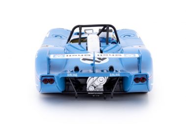 The Matra-Simca MS 670 was a Prototype race car that won the Le Mans 24 Hours 3 times in a row (from 1972 to 1974) as well as the World Manufacturers Championship twice (1973 and 1974). It was designed by Bernard Boyer and Jean-Louis Cassin. A ‘B’ was added in 1973 to the ‘670’ name to indicate that a Porsche gearbox was used as opposed to the previously used ZF. The chassis was an Aluminium monocoque, coupled with a fibreglass body to reduce weight by 22 kg. It was powered by a 60°, 3-litres V12 engine, with aluminium block and head, whose bore and stroke were 79.7*50.0 mm. The Matra V12, named ‘MS 73’, was famous for its amazingly loud sound, and reached 480 CV at 10500 RPM with torque peaking at 320 Nm @ 8400 RPM. In Le Mans it raced with six-in-one exhausts, propelling the car to 320 km/h on the Mulsanne straight. Braking was guaranteed by outboard Girling ventilated discs, all-round. Rims dimensions were 13” x 11” at front and 13” x 17” at rear. The car weighted 693 kg. There were three MS670B racing in Le Mans in 1973, with No.12 driven by Jean-Pierre Jaussaud and Jean-Pierre Jabouille. They finished in third position.