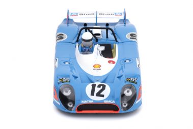 The Matra vs. Ferrari showdown took place on the Circuit de la Sarthe, on June 9th and 10th, 1973, a day which also marked the 50th anniversary of the 24 Hours of Le Mans. The red Ferrari No. 16 driven by Merzario and Pace started from pole and run away in the distance, chased by the blue Matra of Beltoise and Cevert. When, after two hours, the italian leaders developed a fuel piping issue, the Matra No. 10 took their place on the leaderboard, only to be dangerously delayed, and later forced to retire, by tyre issues. At the end of a grueling race, the checquered flag was waved in front of the victorious Matra Simca 670B No.11 of Henry Pescarolo and Gérard Larrousse. The podium was completed by the surviving Ferrari 312 PB n.16 of Merzario and Pace, and finally Matra’s n.12 car of Jabouille and Jaussaud.